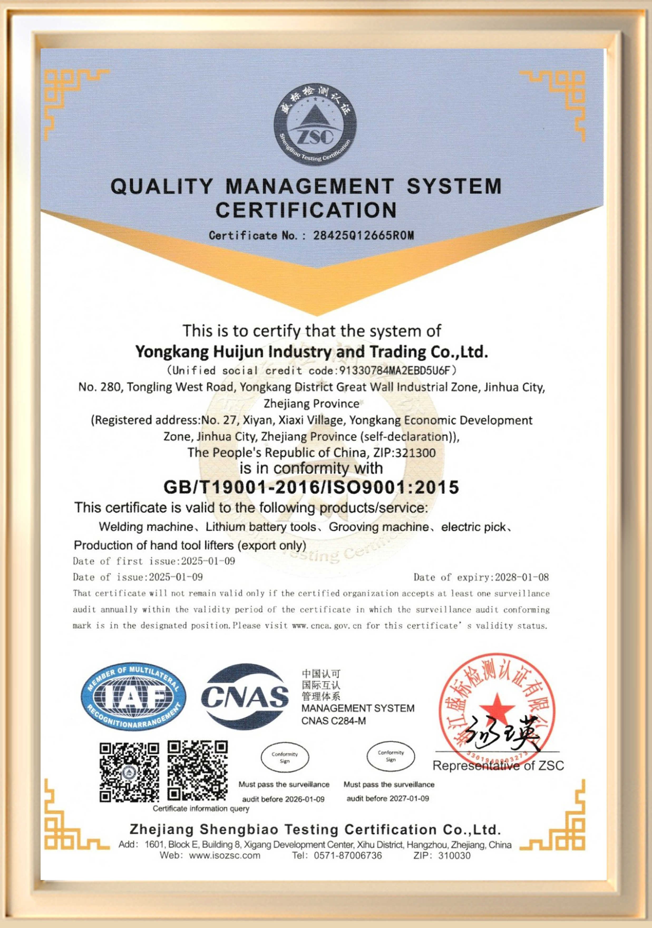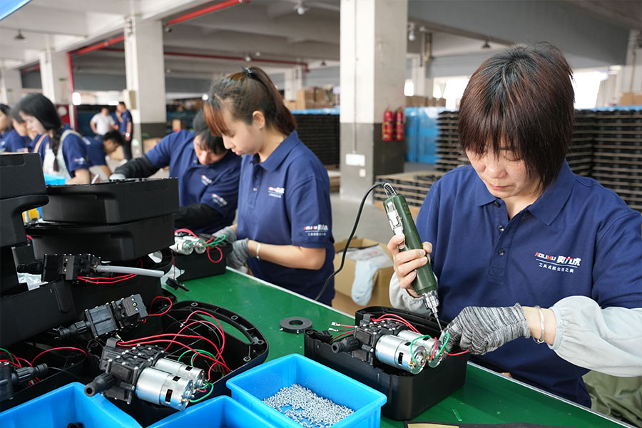 ООО “Юнкан Хуэйцзюнь Индастри энд Трейд” является комплексным предприятием, интегрирующим производство, исследования и разработки, продажи и торговлю. Его штаб-квартира находится в городе Юнкан, Цзиньхуа, который пользуется репутацией столицы оборудования. После многих лет развития и реформ завод сформировал способность самостоятельно производить несколько серий продукции, таких как долбежные станки, электрические отбойные молотки, электрические сварочные аппараты, ручные инструменты, серии литиевых батарей и т. д. Он имеет четыре основные производственные базы, а общая производственная, офисная и складская площадь каждой базы составляет около 20 000 квадратных метров. Общее количество сотрудников составляет более 200 человек. Он имеет сотни профессионального оборудования, такого как шкафы для старения целых машин, комплексные тестеры батарейных панелей, динамометры, балансировочные станки для электродрелей, ветряные турбины, тестеры аккумуляторов, автоматические винтовые станки, машины для погружения краски, бесшумные терминальные машины для балансировочных машин, намоточные машины и т. д. Он использует основные технологии, такие как синхронные двигатели с постоянными магнитами, интеллектуальные чипы и компенсация скорости. Он имеет около 30 частных формовочных изделий и 12 полных сборочных линий с ежедневным выпуском около 2000 единиц. Годовой выпуск может достигать около 700 000 единиц.